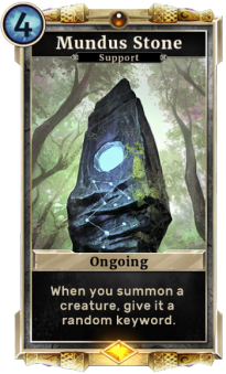Mundus Stone: This card is used just for its effect of giving keywords and highrolling the better ones on your