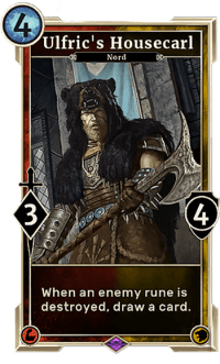 Ulfric’s Housecarl has no such one-turn-kill strategy associated with it, but the value it generates is absolutely immense for an Aggro strategy and this would allow some counter-play with the Prophecy mechanic. Getting a Lightning Bolt after the opponent had played an Ulfric’s Housecarl and started going for runes would give you the choice of actually denying the Housecarl’s card draw entirely, as opposed to them still getting the first card draw at least. This would give the reactive player more decent choices depending on the board state.